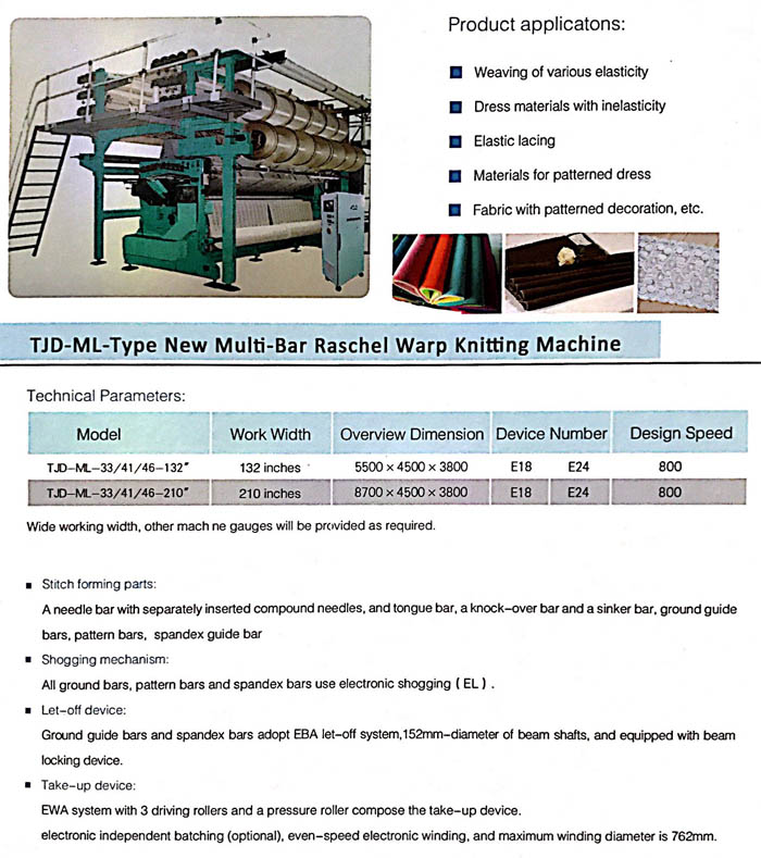 TJD-ML-Type New Multi-Bar Raschel Warp Knitting Machine